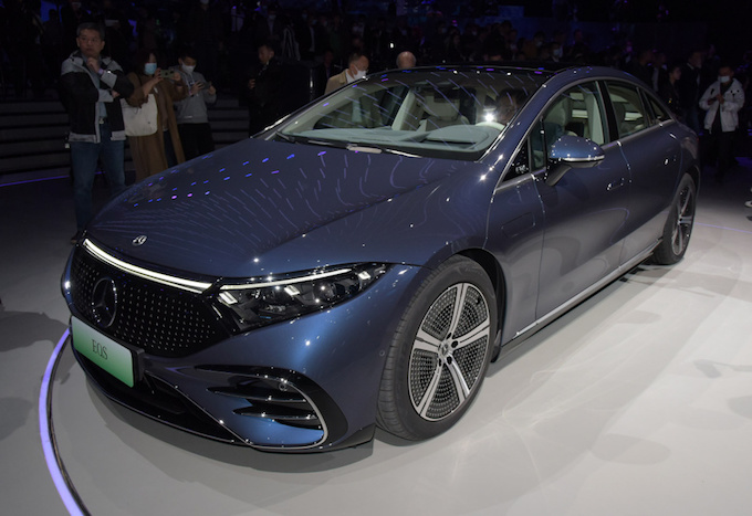 奔馳EQS是梅賽德斯-EQ旗下基於EVA平台的首款電動車,採用溜背式造型設計,WLTP工況下續航里程達700公里。EQS採用全封閉式格柵,以及貫穿車頭的燈帶。新車亮點之一是採用了智能數字大燈(DIGITAL LIGHT)。整車風阻系數僅為0.20Cd,雙色車身更易聯想到邁巴赫的作風。